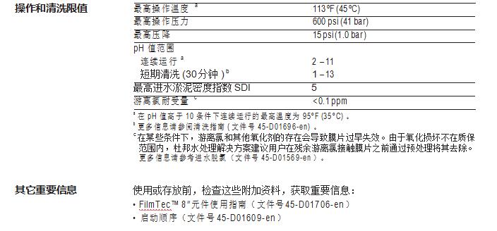 • 34mil 的進(jìn)水流道,降低了膜元件被污堵的幾率,并明顯提 高了膜元件的清洗效果