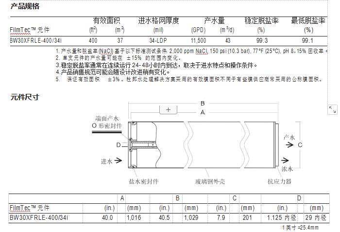 FilmTec™ BW30XFRLE-400/34i 膜元件