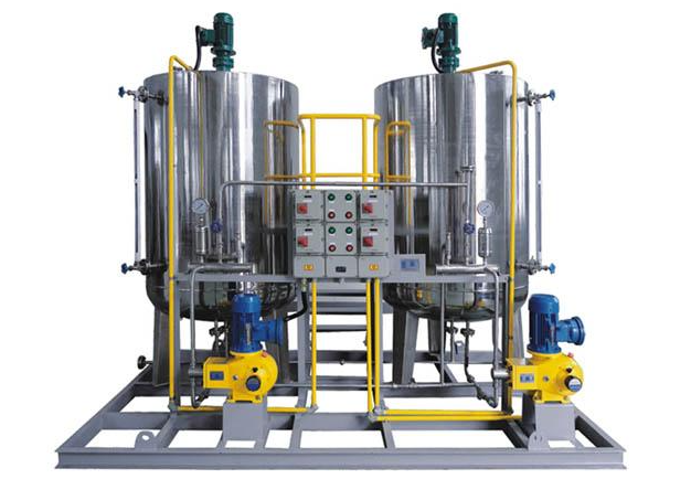 原料處理:采用一體化藥劑罐(容積通常為 200-1000L)存儲阻垢劑、緩蝕劑等功能性藥劑,罐體內(nèi)置攪拌裝置(轉(zhuǎn)速 60-80r/min),確保固體藥劑充分溶解(溶解率≥98%),避免藥劑沉淀導(dǎo)致的計量誤差。